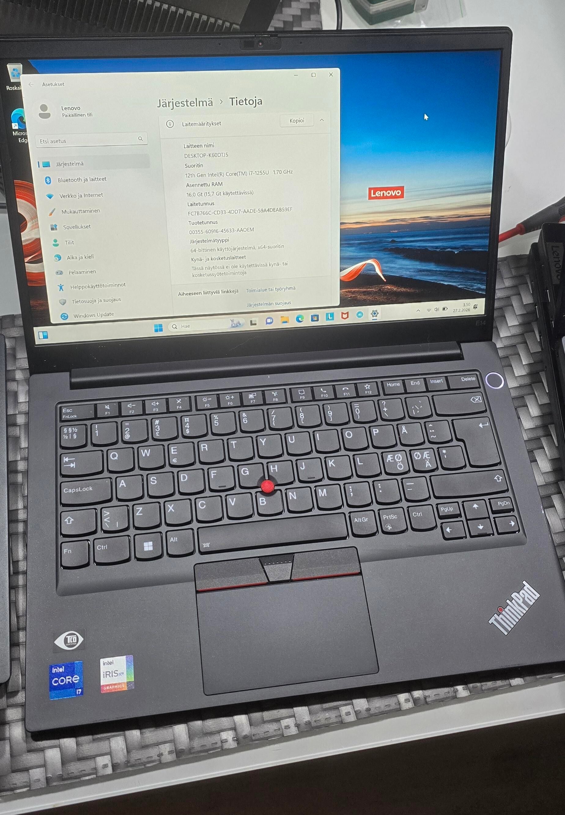 Lenovo e14 gen4 kone, i7-1255U, 16Gb muistia, 500Gb ssd, win11 pro, takuuta 7kk jäljellä.